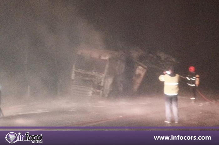 Conforme informações da Polícia Rodoviária, o incêndio ocorreu por volta da meia noite e 45 min no quilometro 159 da rodovia. O veículo G450 com placas de Chapecó estava carregado com resíduos, era conduzido por um homem de 40 anos, ele não sofreu ferimentos.