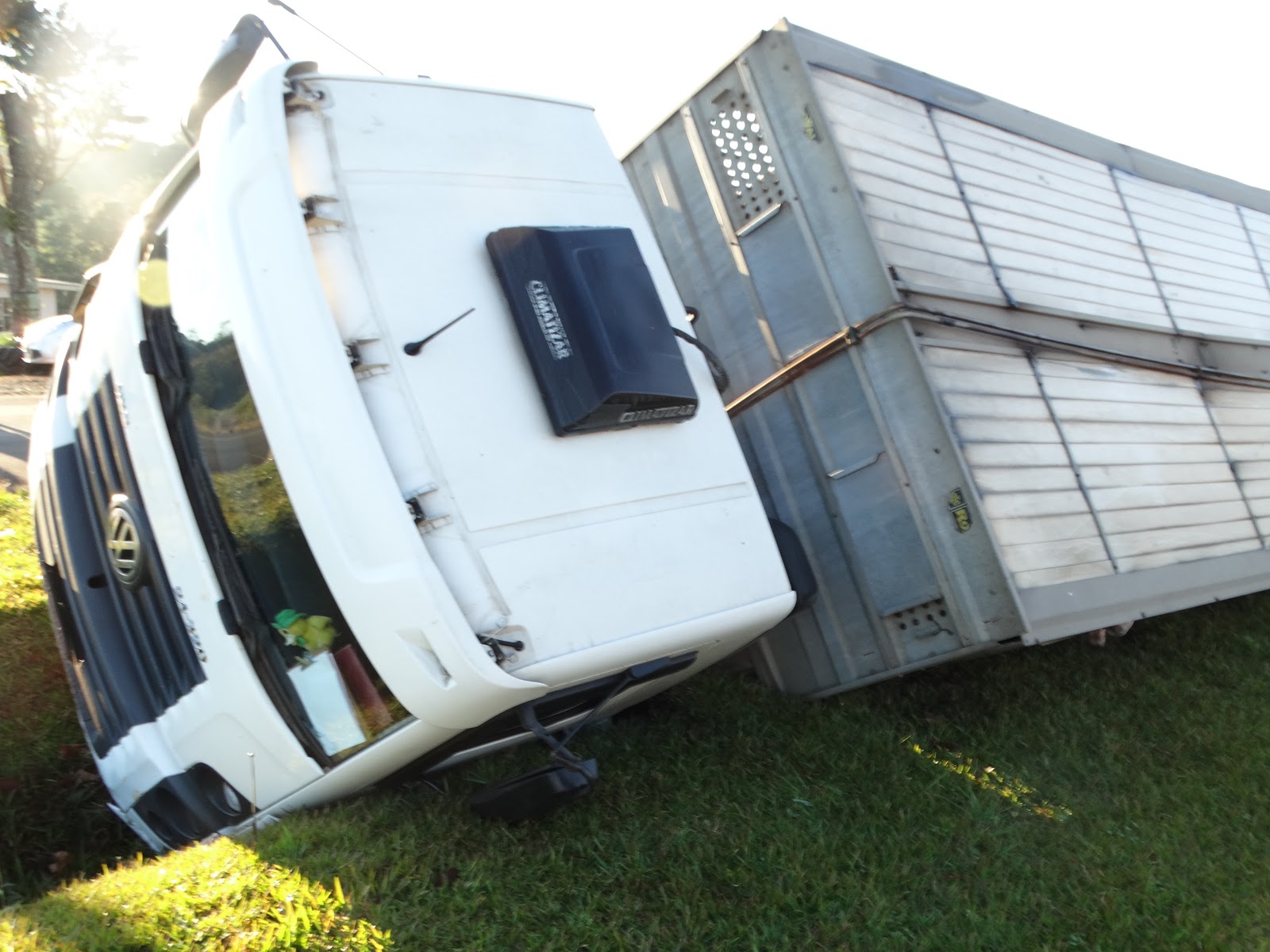 Segundo informações do condutor que saiu ileso, perdeu-se aos volantes vindo a tombar o caminhão Volkswagen 24-320, de placa, IRN 5808. Ainda comentou que alguns porcos morreram com o choque. A carga vinha de Nova Bassano com destino a cidade de Chapecó-SC.