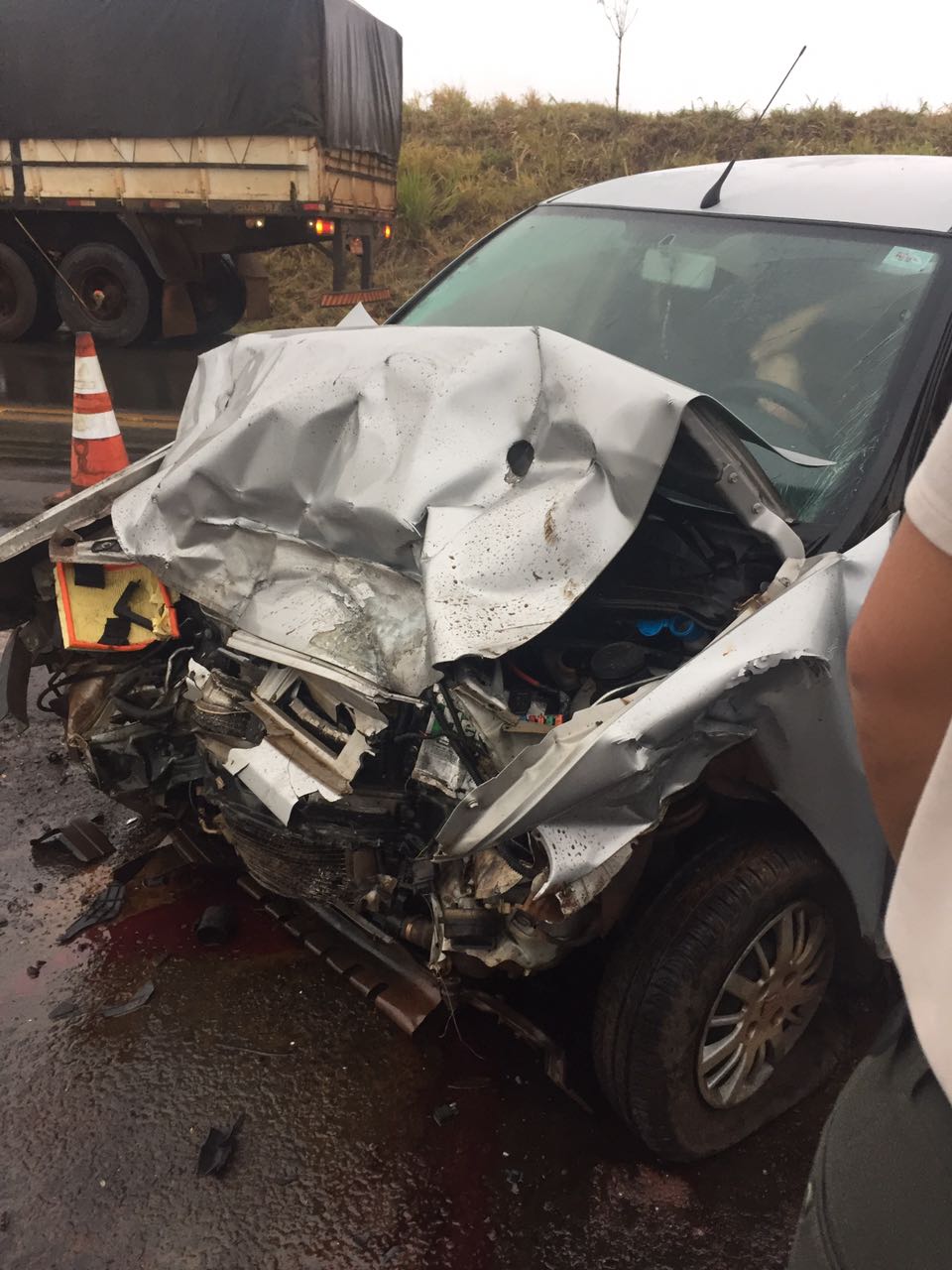 O acidente ocorreu por volta das 7h4min, no Km 494, e envolveu um automóvel Fiat Pálio com placas de Entre-Ijuís, que era conduzido por Elisandra Cristina Mertins, que colidiu frontalmente contra um caminhão transportador de combustível, com placas de Santo Ângelo. O caminhão tombou na lateral da rodovia, mas o motorista não ficou ferido.