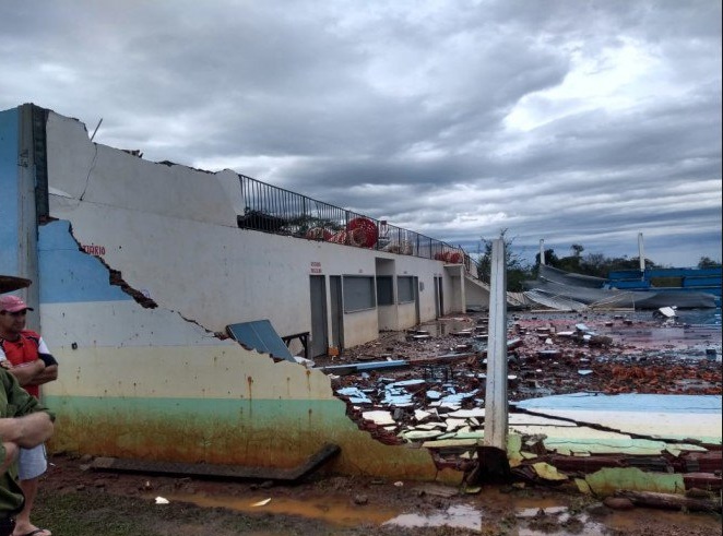 O temporal que atingiu a região do Extremo-Oeste, na tarde desta quinta-feira (30), destruiu completamente um ginásio localizado na comunidade de Linha Grápia, no interior do município de Paraíso/SC.Cerca de 50 policiais militares, com 25 viaturas, também atendem às ocorrências ocasionadas por causa do temporal. Algumas viaturas, que prestam apoio, são de municípios vizinhos de São Miguel do Oeste