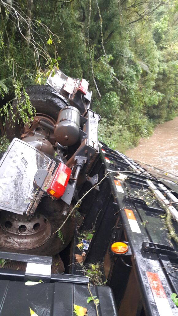 A Polícia Rodoviária Federal está em atendimento a um acidente, no qual o condutor de um caminhão saiu da pista e caiu em um arroio. O acidente aconteceu no quilômetro 274 da BR-386, em Fontoura Xavier, possivelmente na noite de quarta-feira (11) - segundo relatos de um morador das imediações.